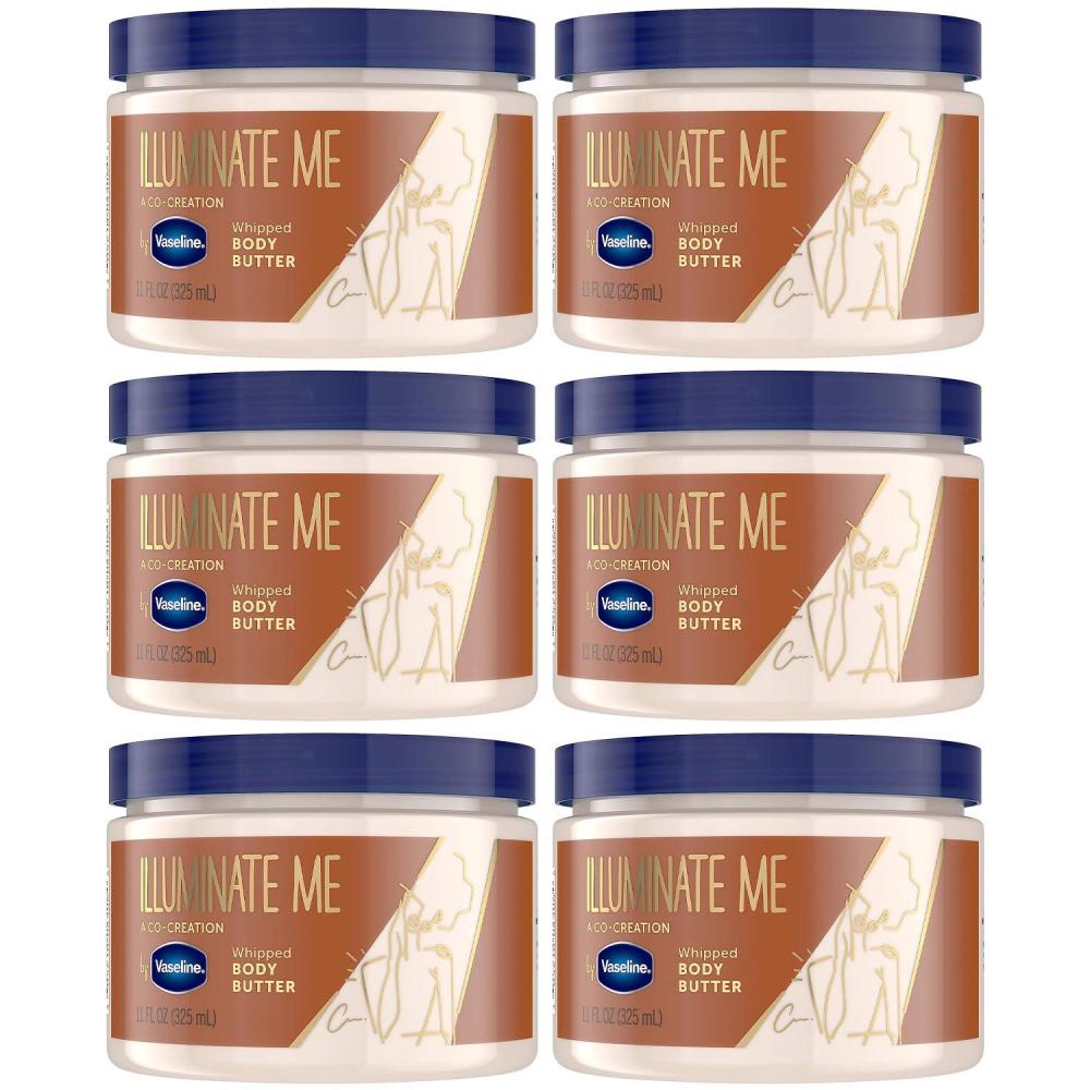 imageVaseline Illuminate Me Shea Butter Whipped Body Butter for Melanin Rich Skin Provides 24 Hour Moisturization for Dry Skin 11 oz183 Ounce Pack of 6
