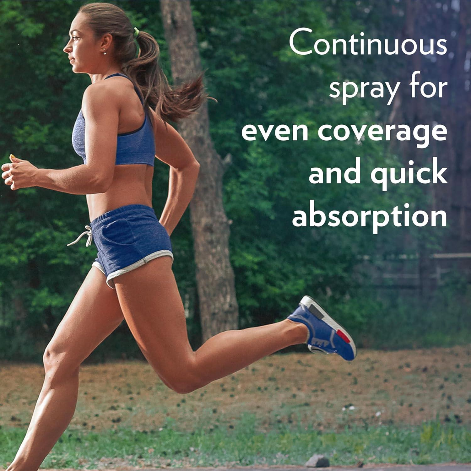 Continuous spray lotion moisturizes deeply and absorbs in seconds.