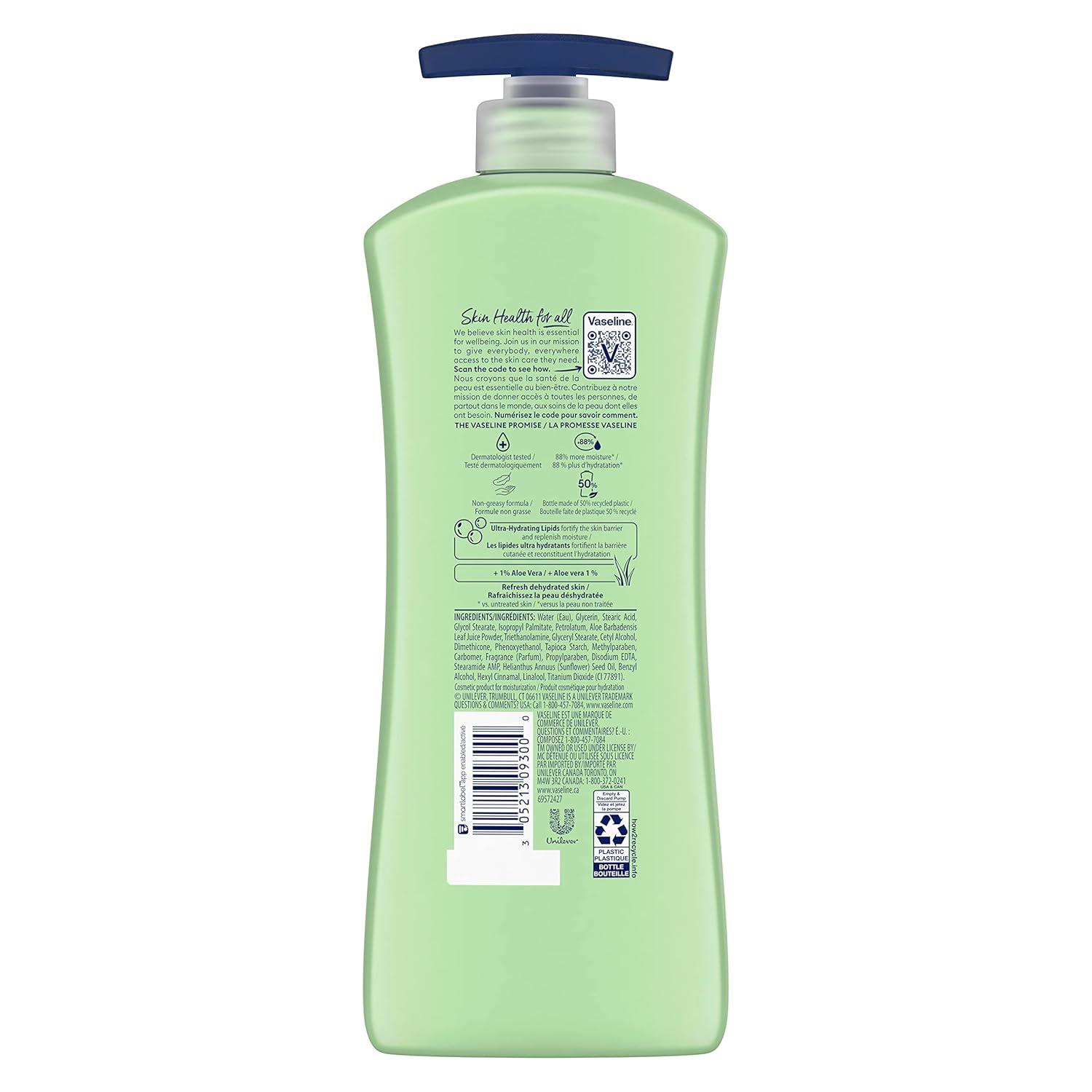 Vaseline Intensive Care Body Lotion for Dry Skin Soothing Hydration Lotion Made with Ultra-Hydrating Lipids + 1% Aloe Vera Extract to Refresh Dehydrated Skin 20.3 oz, Pack of 3 (packaging May Vary)(20.3 Fl Oz (Pack of 4))
